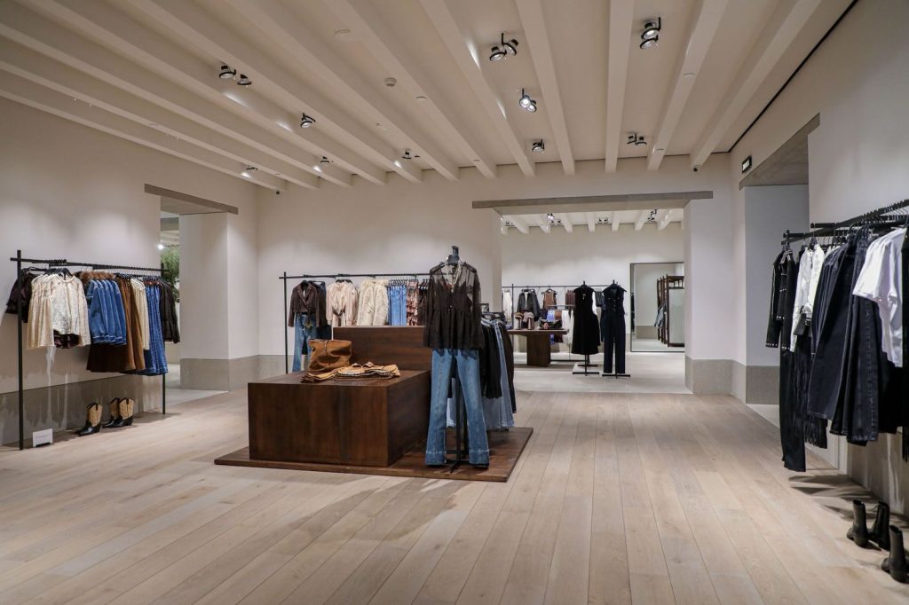 التصميم يعكس هوية العلامة الجديدة، ويضم أقسام عرض مبتكرة تتيح للزبائن تجربة سلسة، مدعومة بأحدث الأنظمة التكنولوجية. وفي الوقت نفسه، تم اعتماد أسلوب البوتيك الخاص في بعض الأقسام، مع أثاث وتصاميم فريدة تمنح كل مجموعة هوية مميزة وتُعزّز الارتباط بين الزبون والمنتج.تصميم معماري بتفاصيل دقيقةيأخذ المتجر روّاده في رحلة عبر مساحات مصمّمة بعناية فائقة، حيث تتكامل العناصر التقليدية والمعاصرة بانسجام لخلق أجواء أنيقة ومريحة. الطابق الأرضي يضم قسم للأحذية والحقائب وصالات قياس بتصميم منزلي مريح، أما قسم الأزياء النسائية الشابة فيتميز بلمسات معدنية عصرية، بينما يعكس قسم Zara Man طابعًا جريئًا من خلال التباين الواضح بين الأبيض والأسود مع صور فوتوغرافية فنية على الجدران. استخدام المواد الطبيعية مثل الخشب، والحجر، والرخام، والسيراميك، والأقمشة العضوية، إلى جانب الإضاءة الطبيعية والاصطناعية، أضفى أجواءً راقية ومشرقة تجعل كل زاوية من زوايا المتجر تجربة بحد ذاتها.